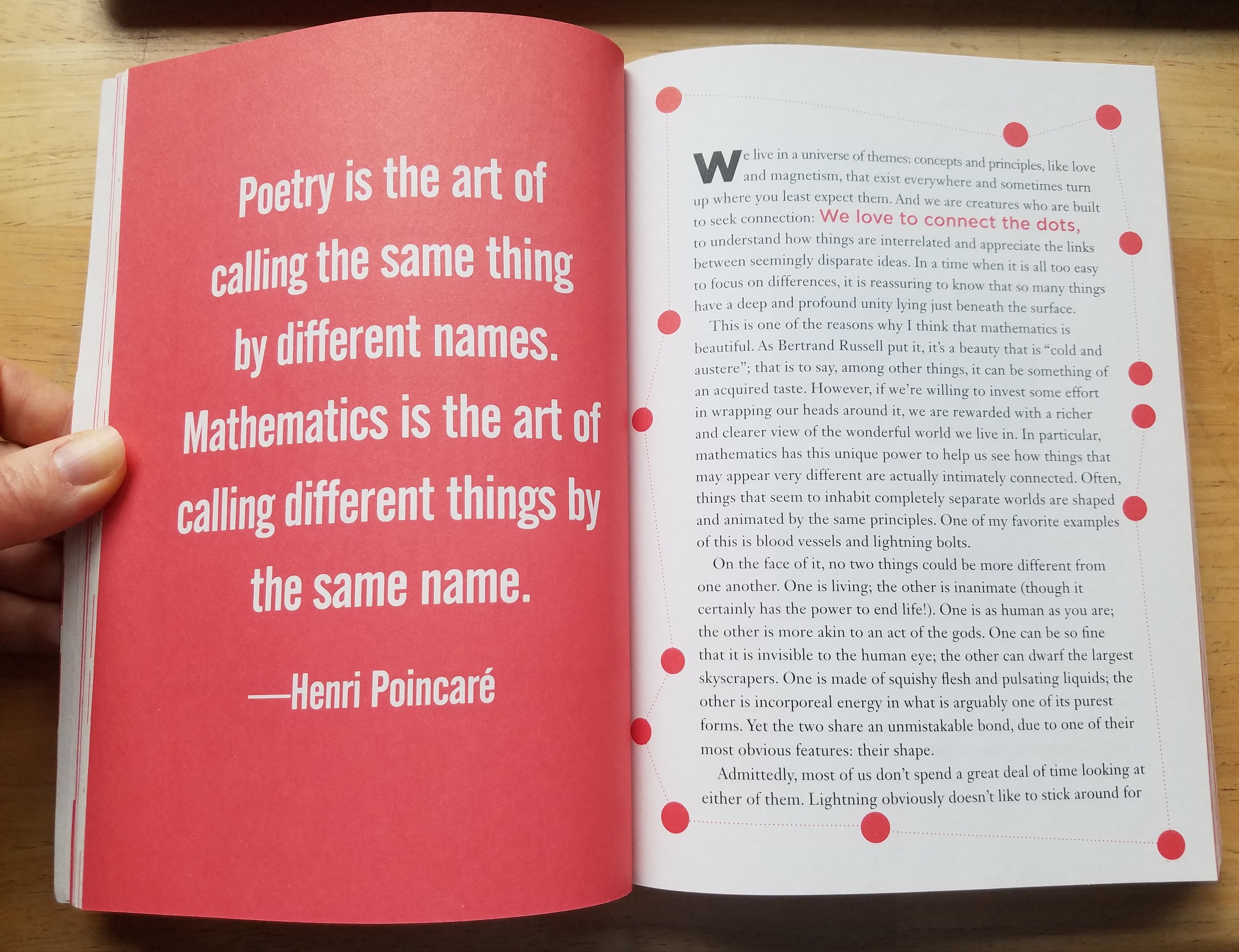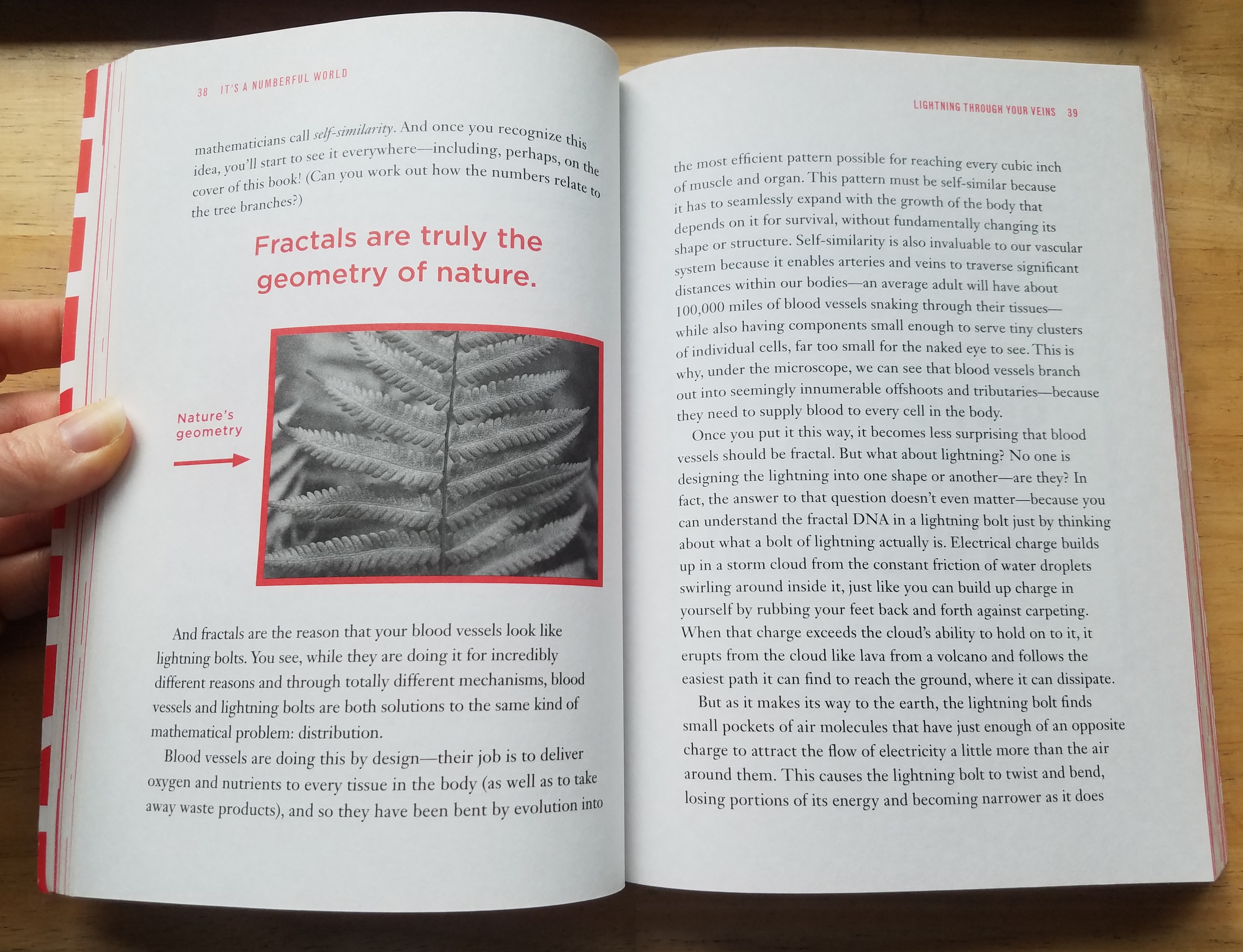 It’s a modern book with modern appeal, and that makes it a fun and very approachable read. Famed Australian math teacher Eddie Woo pulls from all over math history and modern technology while approaching subjects topically–finding math all around us and applying it to all kinds of situations and phenomena. Woo does a great job of communicating his wonder both at the beauty of mathematical patterns and at the way math works, striking an engaging balance between awe and practicality. Here are a few samples page spreads: